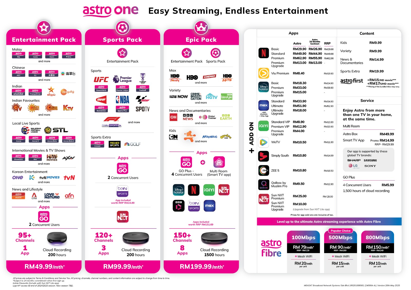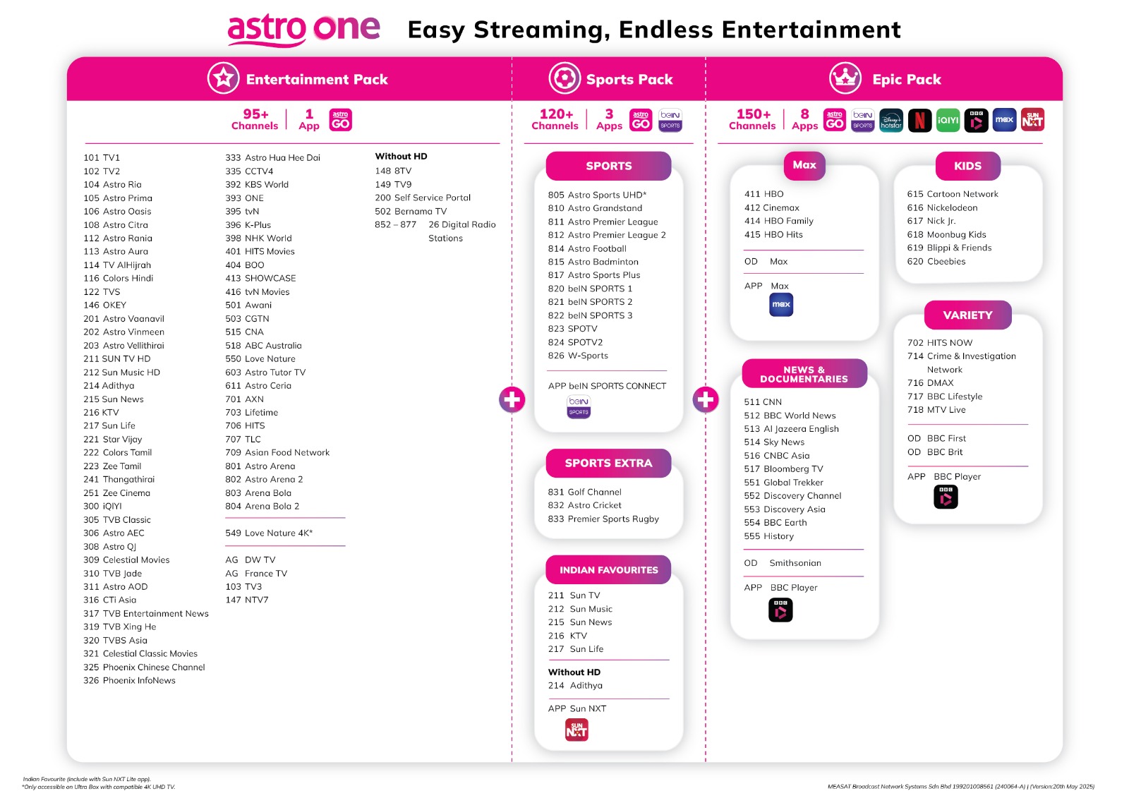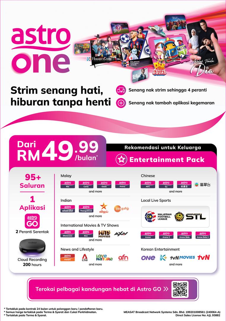 Nikmati lebih 95+ saluran hiburan, sukan & filem terbaik β semua dalam satu pakej Astro One!